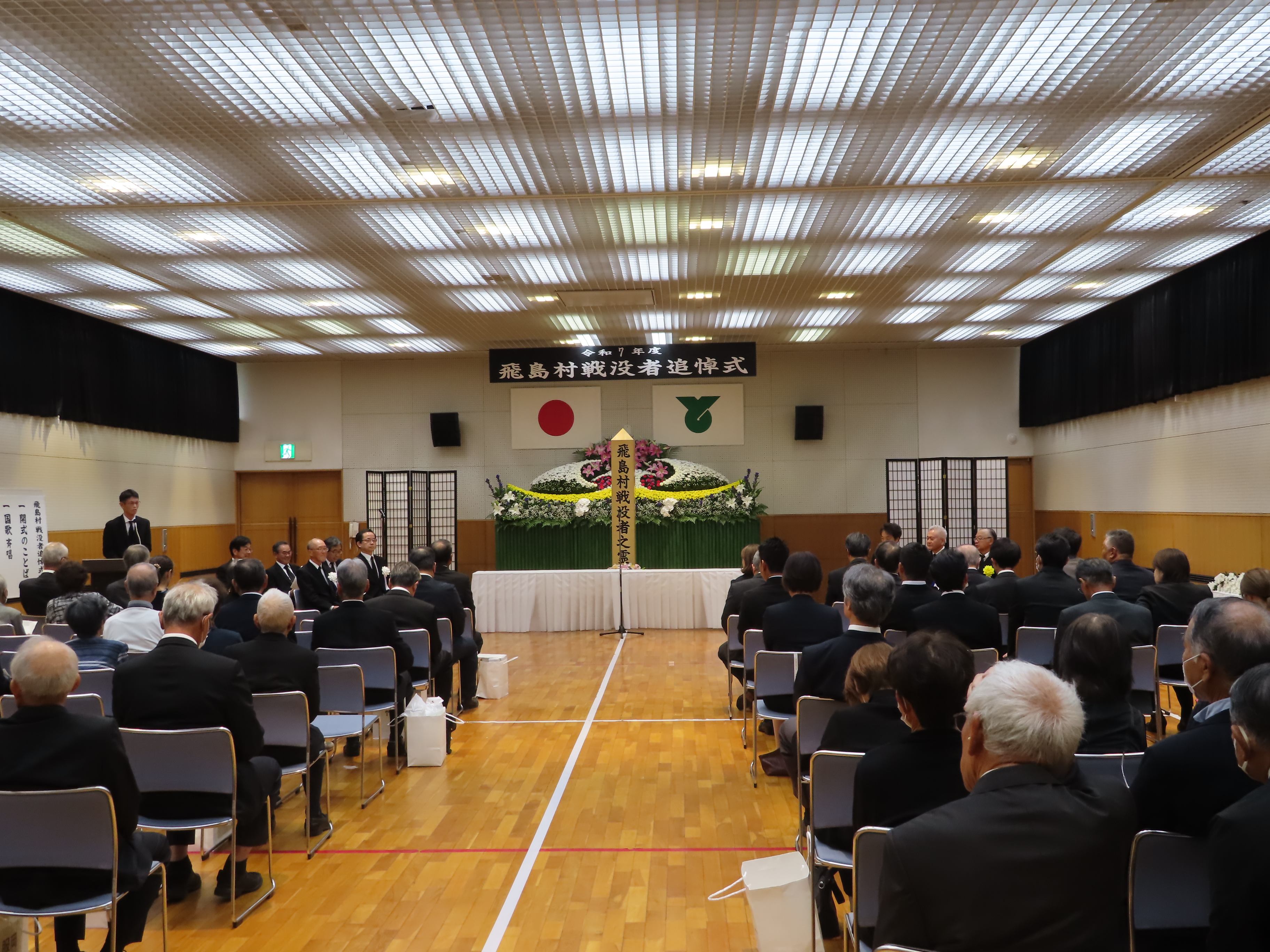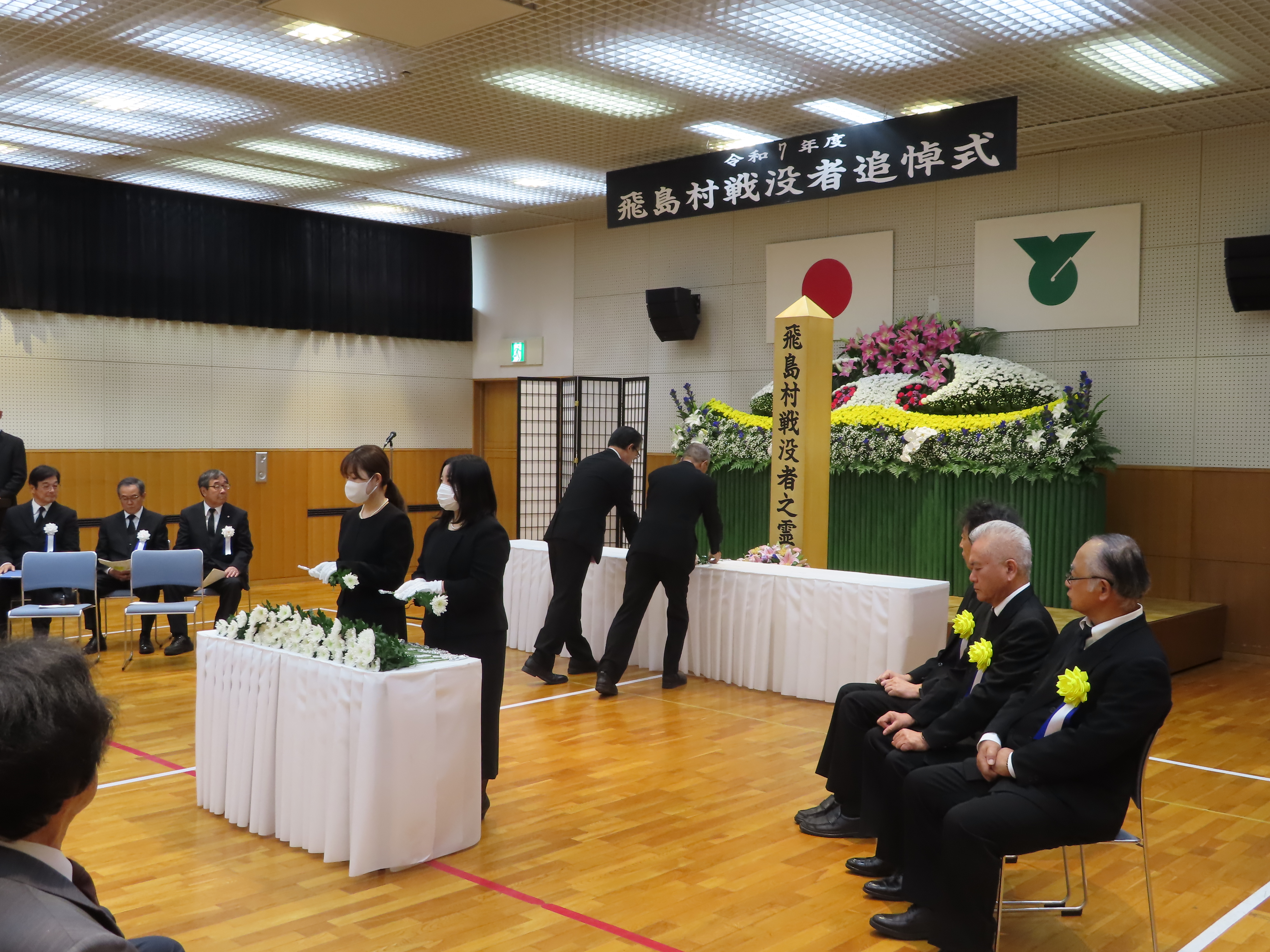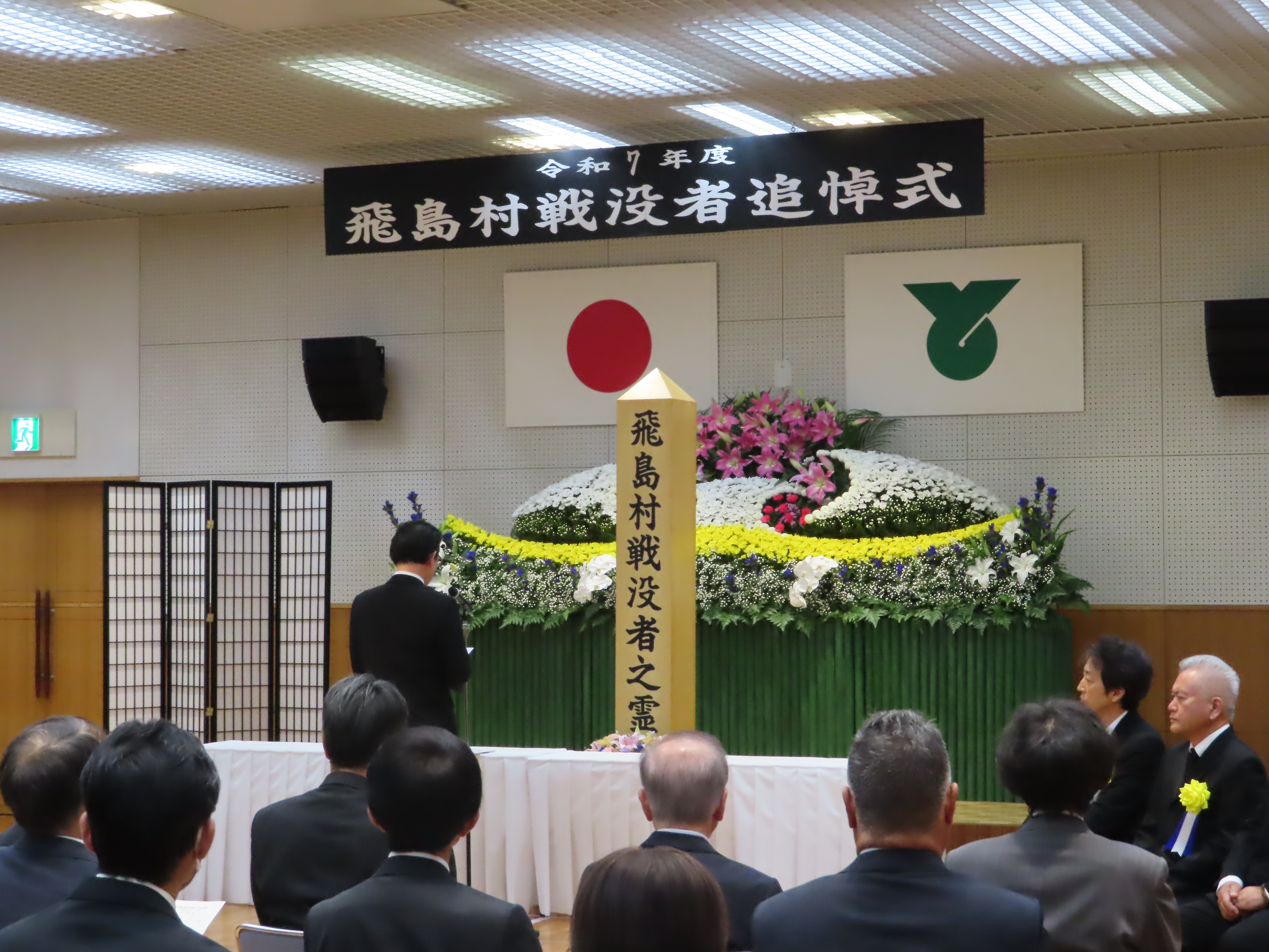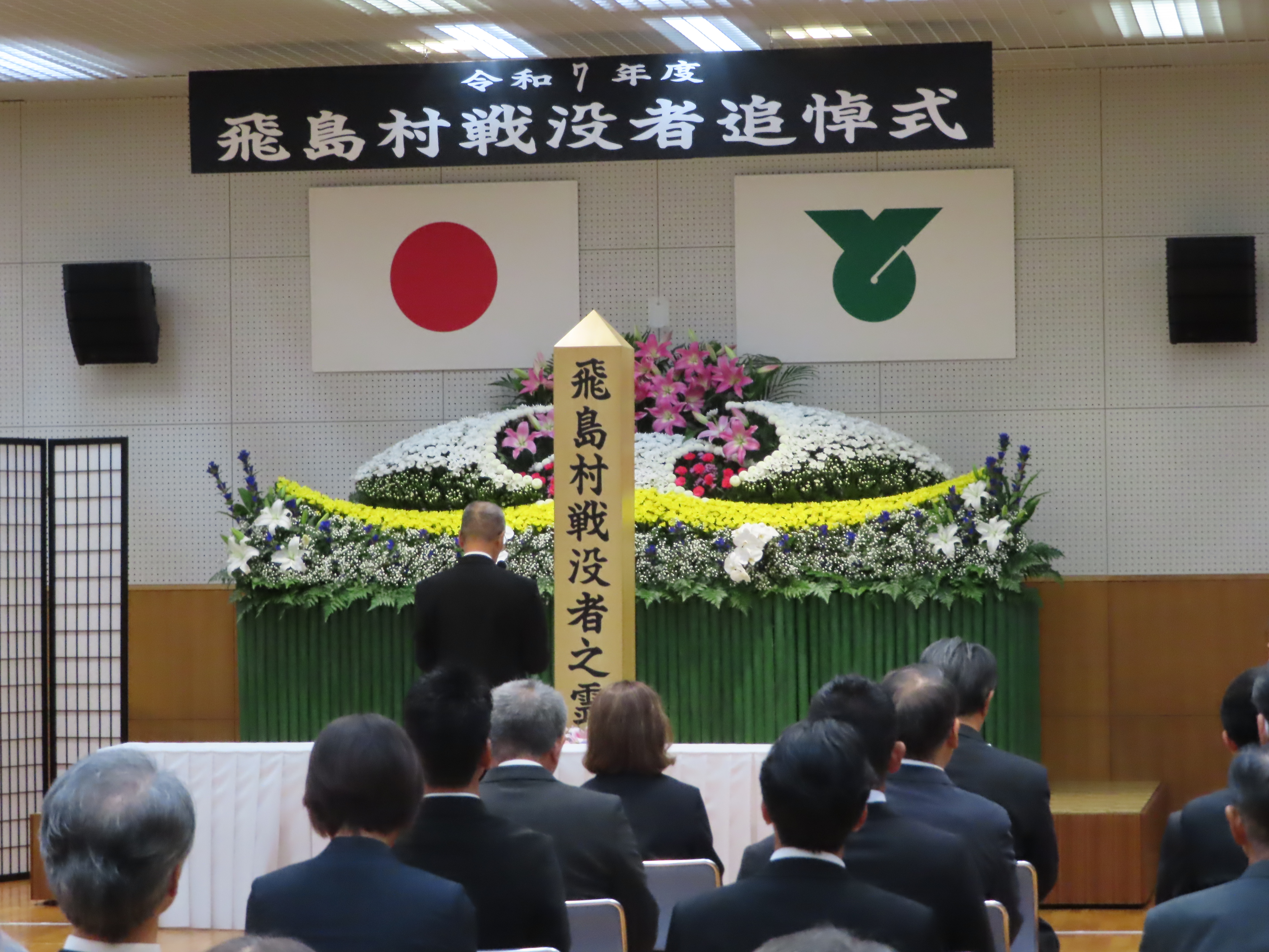 先の大戦において亡くなられた方々に対し、追悼の意を表すとともに、過去の戦争の悲惨さを次世代に伝え平和を祈念するため戦没者追悼式を飛島村と共催で開催しました。